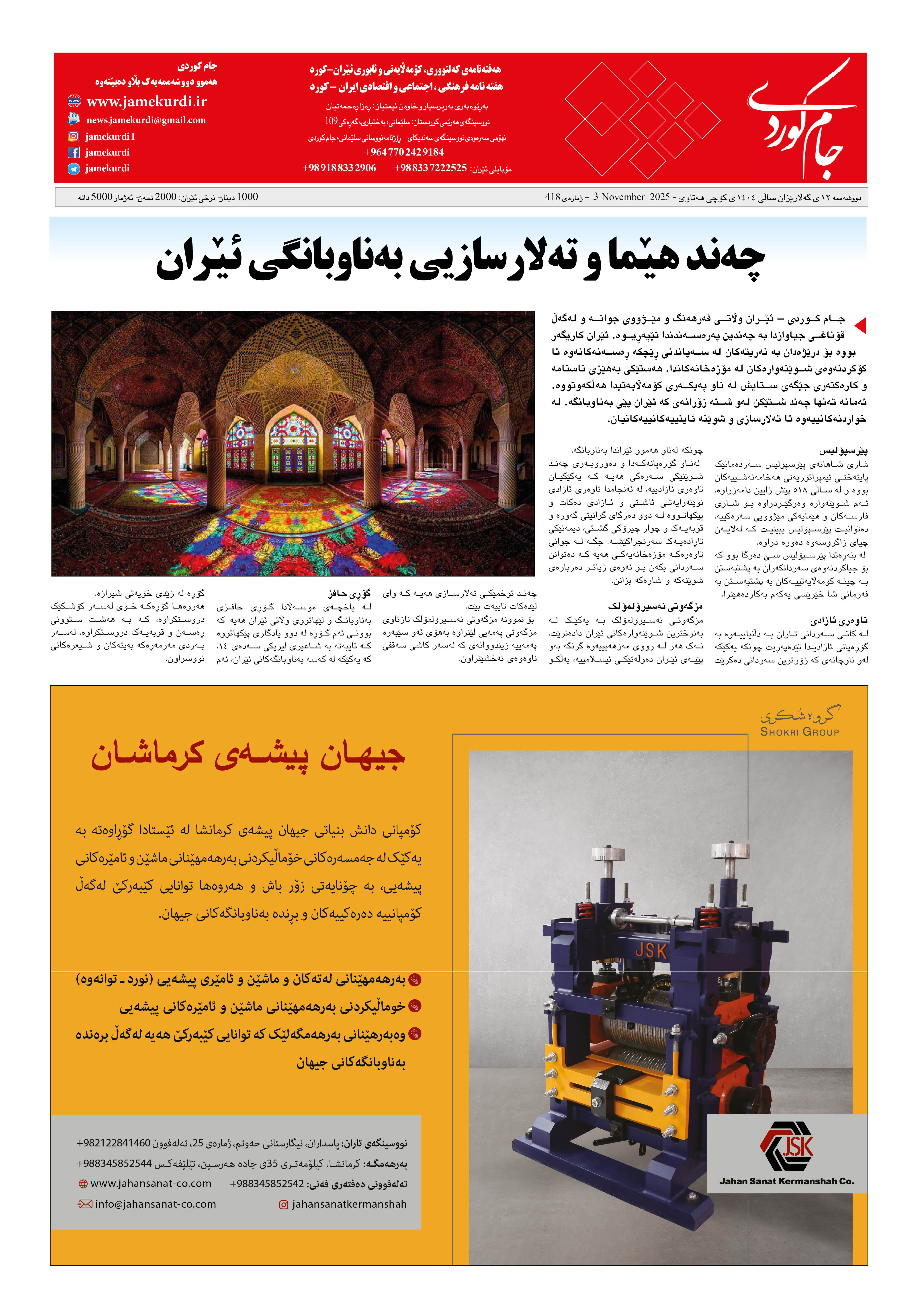Tags: هەفتەنامەی جام کوردیهەفتەنامەی جام کوردی ژمارەی 418
