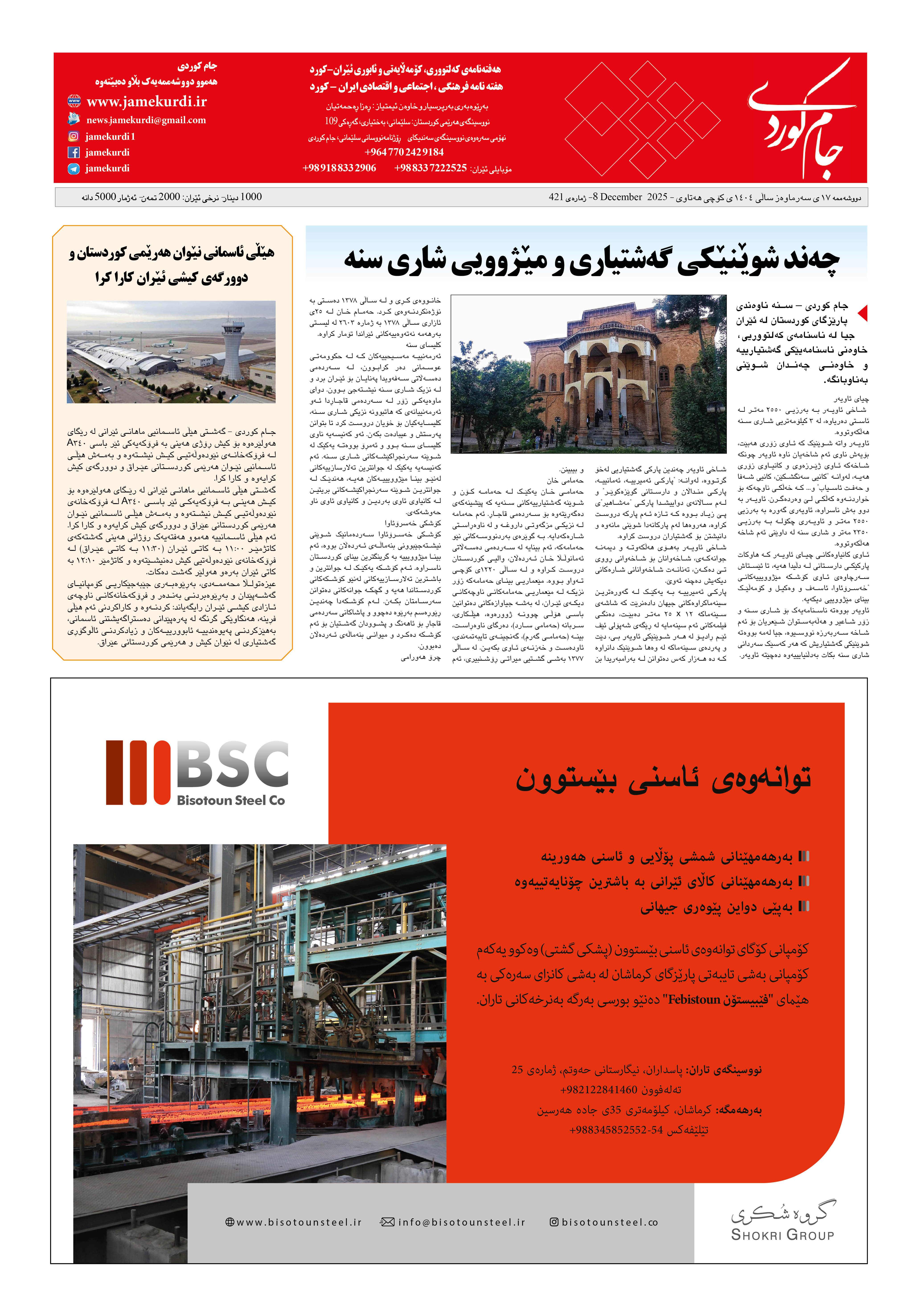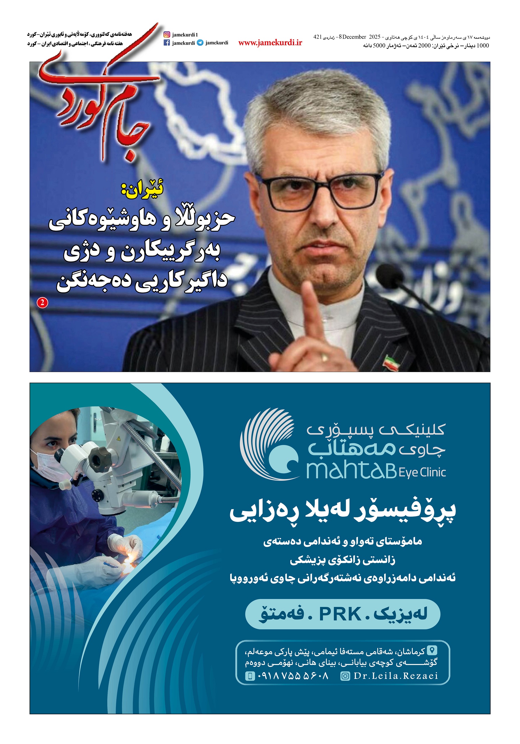 <img class="alignnone size-full wp-image-64742" src="https://archive.jamekurdi.ir/wp-content/uploads/2025/12/421-1.jpg" alt="" width="1784" height="2550" /><img class="alignnone size-full wp-image-64743" src="https://archive.jamekurdi.ir/wp-content/uploads/2025/12/421-2.jpg" alt="" width="1784" height="2550" /><img class="alignnone size-full wp-image-64744" src="https://archive.jamekurdi.ir/wp-content/uploads/2025/12/421-3.jpg" alt="" width="4134" height="5906" /><img class="alignnone size-full wp-image-64745" src="https://archive.jamekurdi.ir/wp-content/uploads/2025/12/421-4.jpg" alt="" width="1784" height="2550" /><img class="alignnone size-full wp-image-64746" src="https://archive.jamekurdi.ir/wp-content/uploads/2025/12/421-5.jpg" alt="" width="1784" height="2550" /><img class="alignnone size-full wp-image-64747" src="https://archive.jamekurdi.ir/wp-content/uploads/2025/12/421-6.jpg" alt="" width="1784" height="2550" /><img class="alignnone size-full wp-image-64748" src="https://archive.jamekurdi.ir/wp-content/uploads/2025/12/421-7.jpg" alt="" width="1784" height="2550" /><img class="alignnone size-full wp-image-64749" src="https://archive.jamekurdi.ir/wp-content/uploads/2025/12/421-8.jpg" alt="" width="4134" height="5906" />