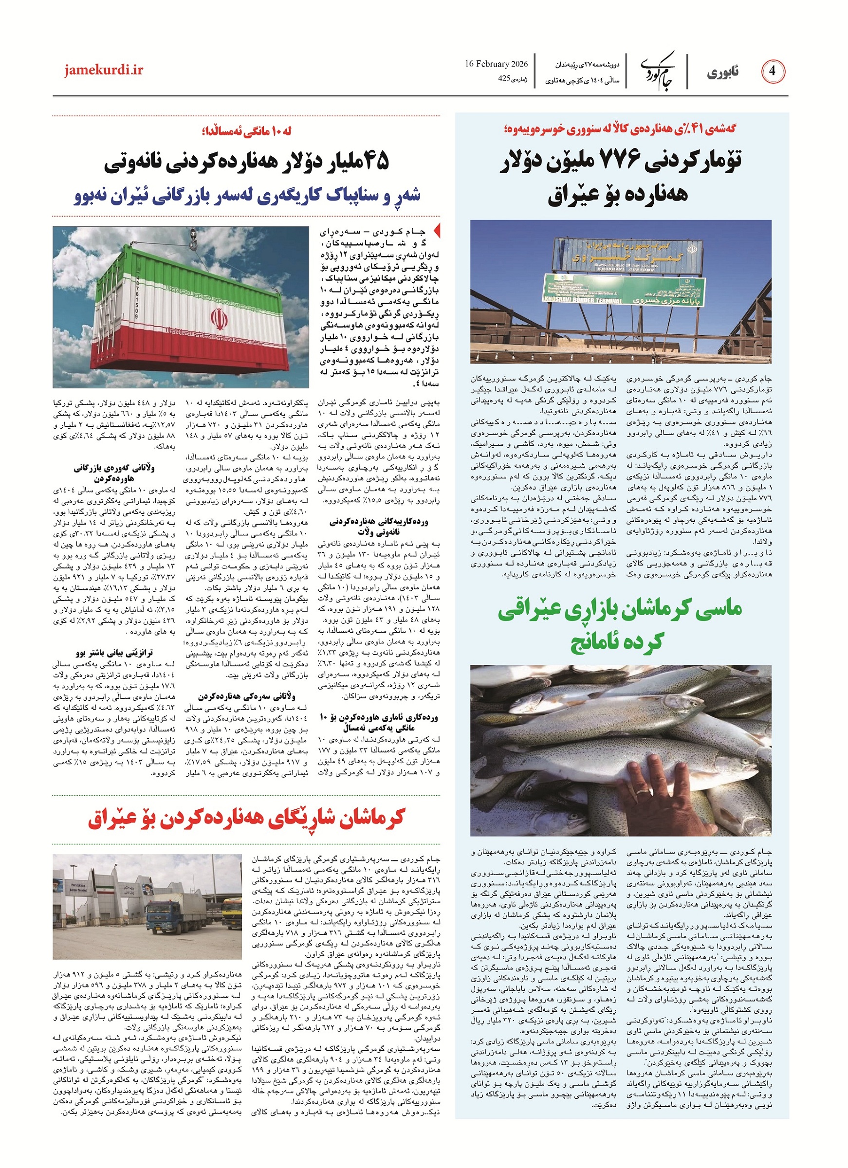 <img class="alignnone size-full wp-image-64788" src="https://archive.jamekurdi.ir/wp-content/uploads/2026/02/jam-425-1.jpg" alt="" width="1789" height="2550" /><img class="alignnone size-full wp-image-64789" src="https://archive.jamekurdi.ir/wp-content/uploads/2026/02/jam-425-2.jpg" alt="" width="1654" height="2300" /><img class="alignnone size-full wp-image-64790" src="https://archive.jamekurdi.ir/wp-content/uploads/2026/02/jam-425-3.jpg" alt="" width="1716" height="2400" /><img class="alignnone size-full wp-image-64791" src="https://archive.jamekurdi.ir/wp-content/uploads/2026/02/jam-425-4.jpg" alt="" width="1742" height="2400" /><img class="alignnone size-full wp-image-64792" src="https://archive.jamekurdi.ir/wp-content/uploads/2026/02/jam-425-5.jpg" alt="" width="1753" height="2400" /><img class="alignnone size-full wp-image-64793" src="https://archive.jamekurdi.ir/wp-content/uploads/2026/02/jam-425-6.jpg" alt="" width="1598" height="2200" /><img class="alignnone size-full wp-image-64794" src="https://archive.jamekurdi.ir/wp-content/uploads/2026/02/jam-425-7.jpg" alt="" width="1745" height="2400" /><img class="alignnone size-full wp-image-64795" src="https://archive.jamekurdi.ir/wp-content/uploads/2026/02/jam-425-8.jpg" alt="" width="1804" height="2550" />